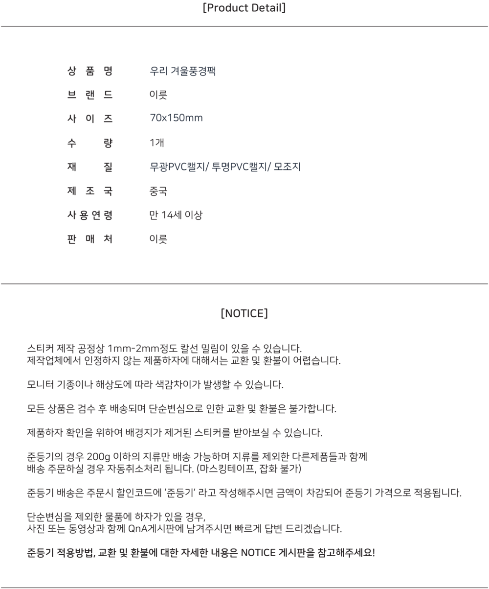 매트펄코팅으로 겨울분위기가 더욱 살아있는 스티커입니다.