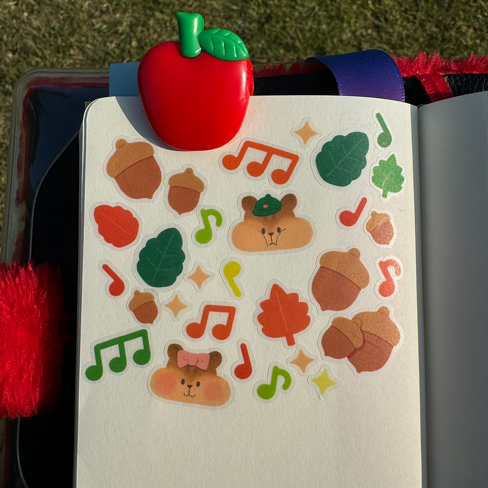 볼빵방 다람쥐들과 음표, 낙엽으로 구성되어 있고