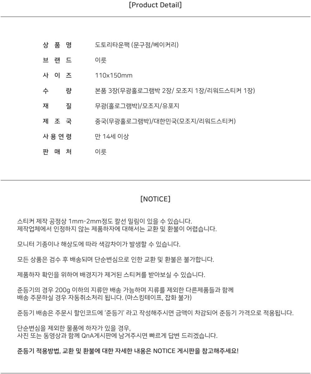 뒷대지 대신 리워드스티커판(도토리타운 상점가 팜플렛)이 동봉 됩니다.