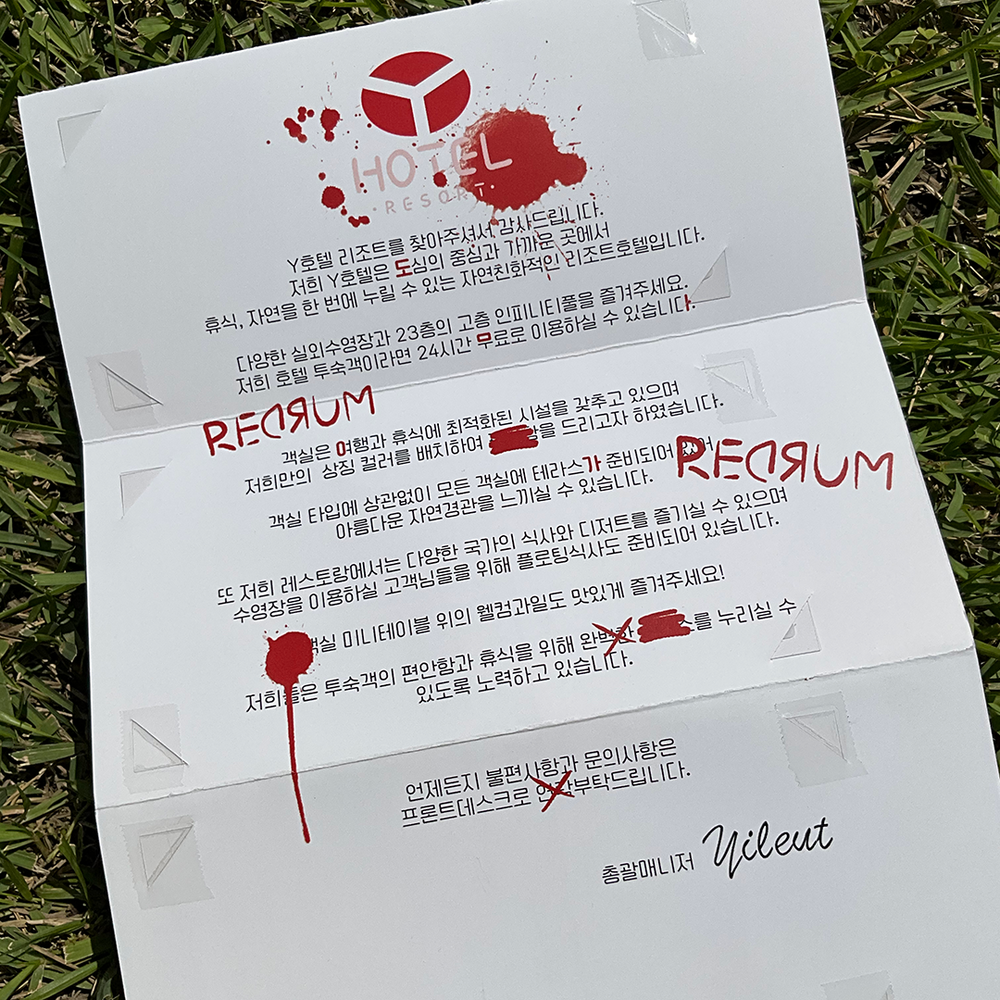 이상한 밤의 와이호텔팩의 뒷면의 총괄매니저의 편지도