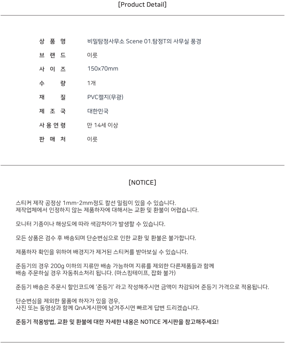 - 제품 특성상 단순 변심, 부주의에 의한 제품 손상 및 파손, 사용 및 개봉한 경우 교환/반품이 불가합니다.