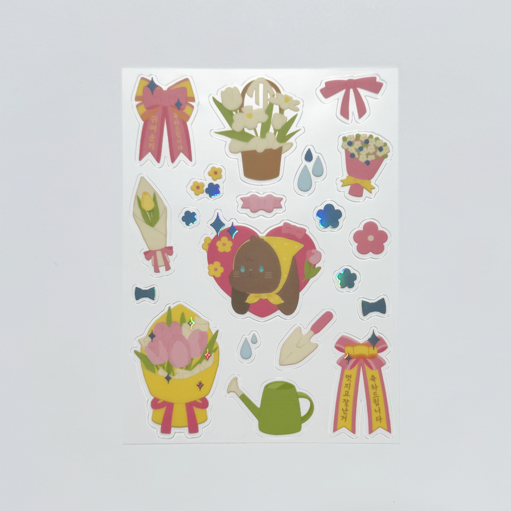 봄, 여름에 만날 수 있는 꽃다발과 꽃바구니를 그려넣었어요