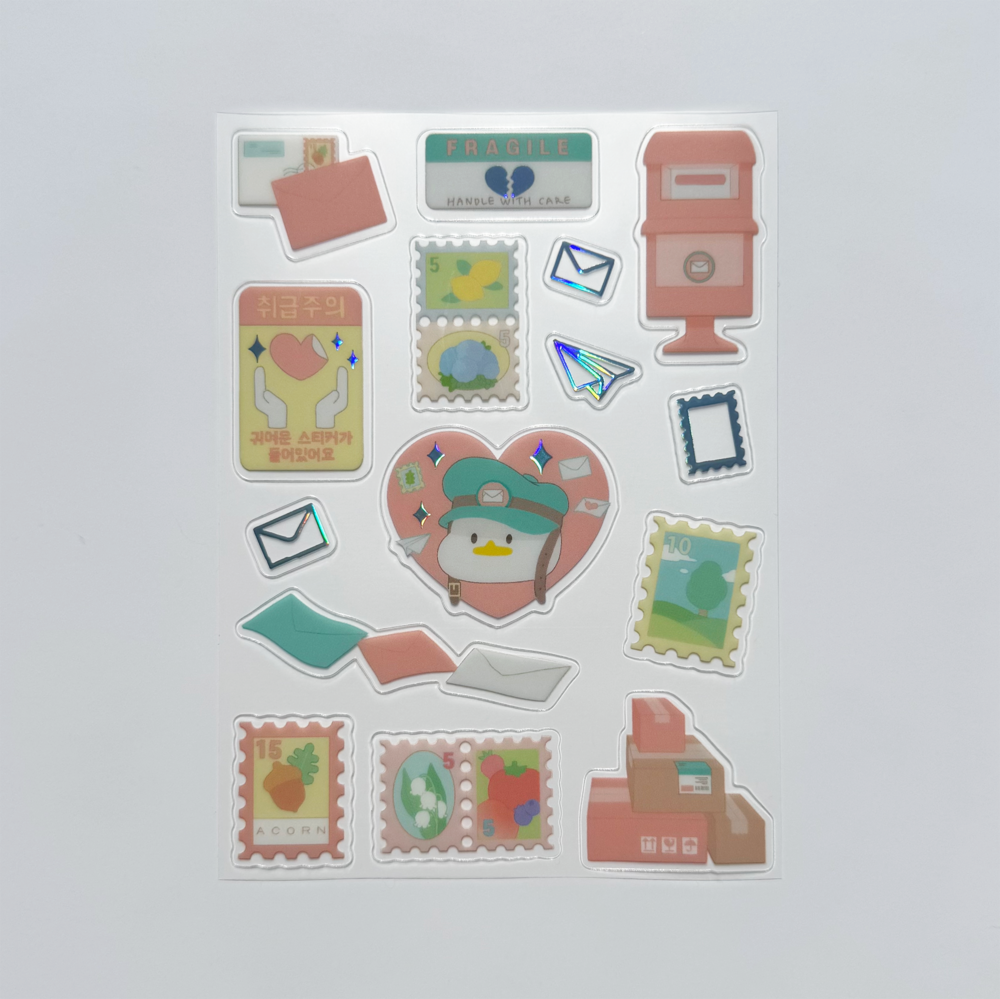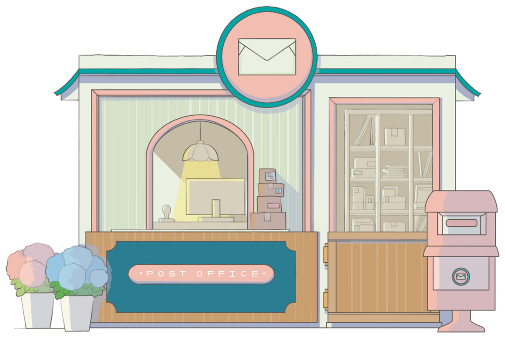 우체국 하면 떠오르는 오브젝트들을 그려넣었습니다.