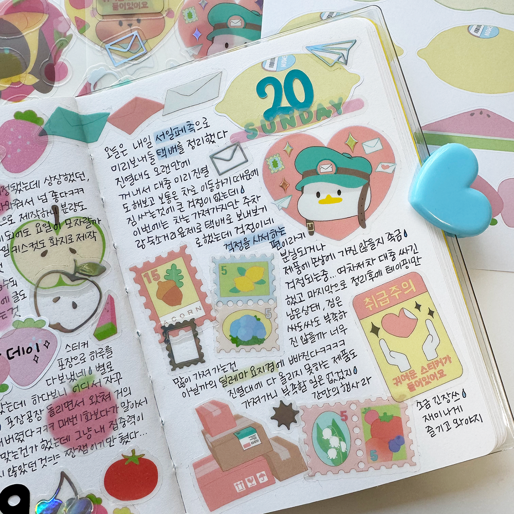 이번 여름에는 납작복숭아 편지지를 판매하고 있어요.