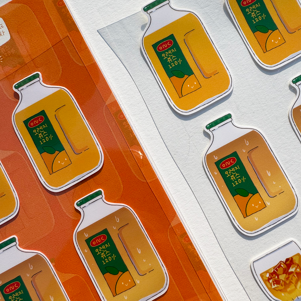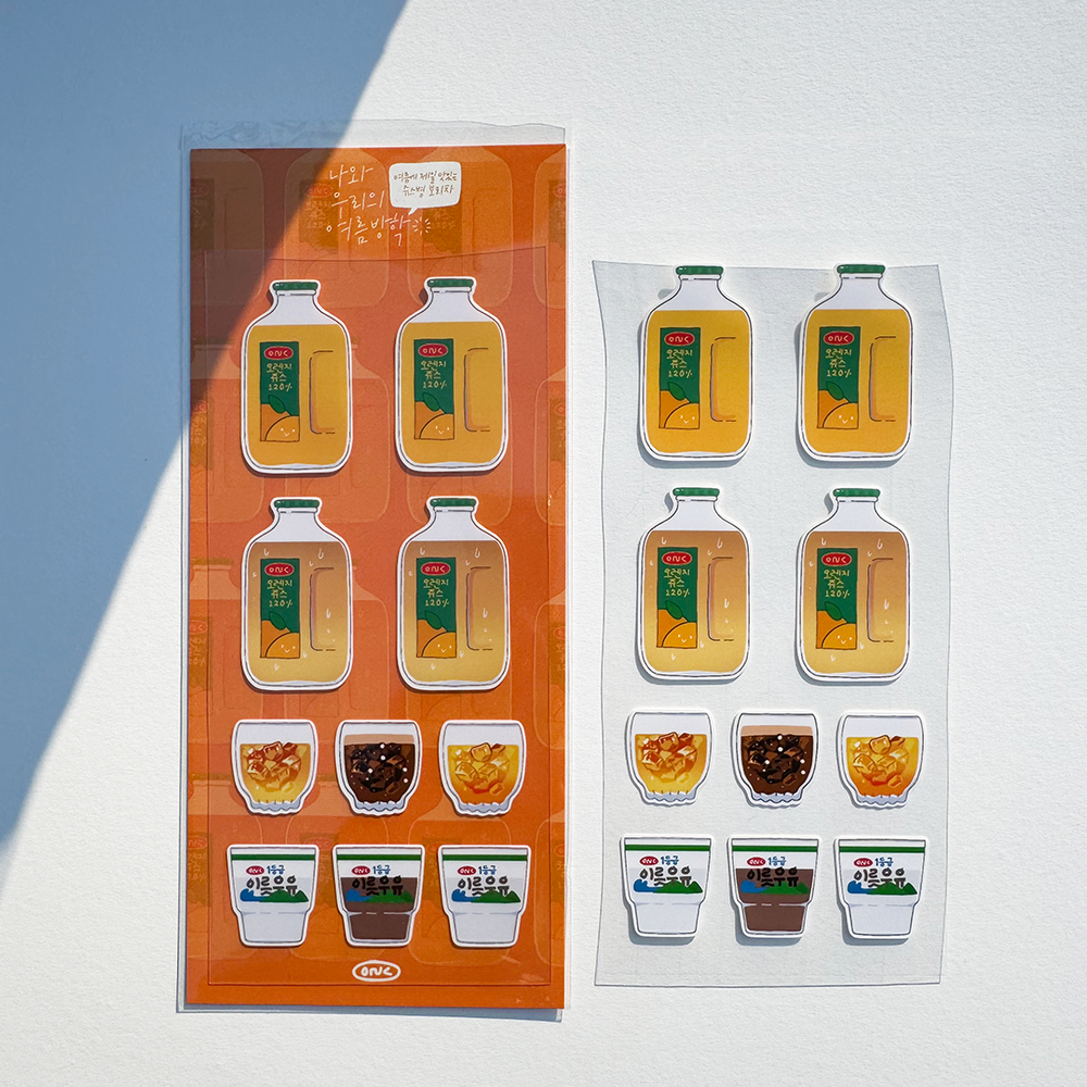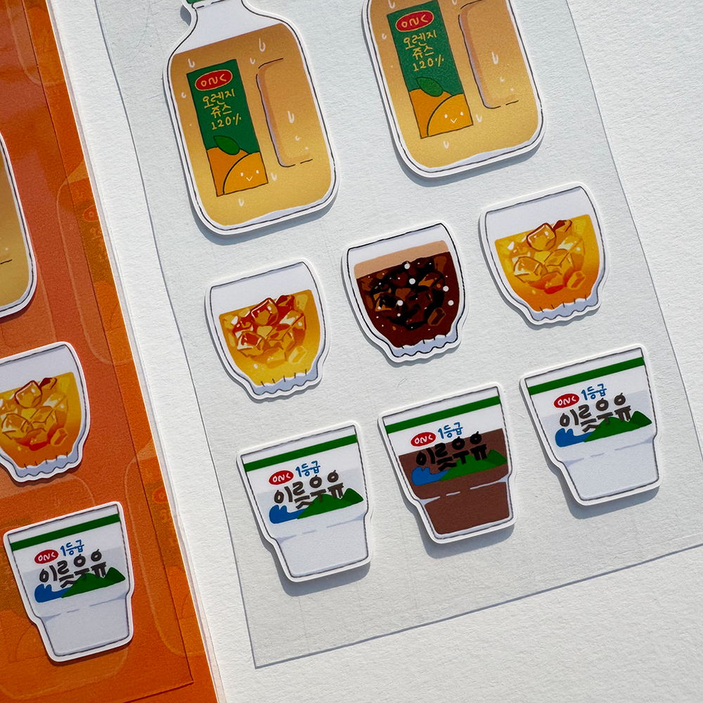 레트로유리잔에 담긴 우유와 음료수도 같이 그려넣었어요.