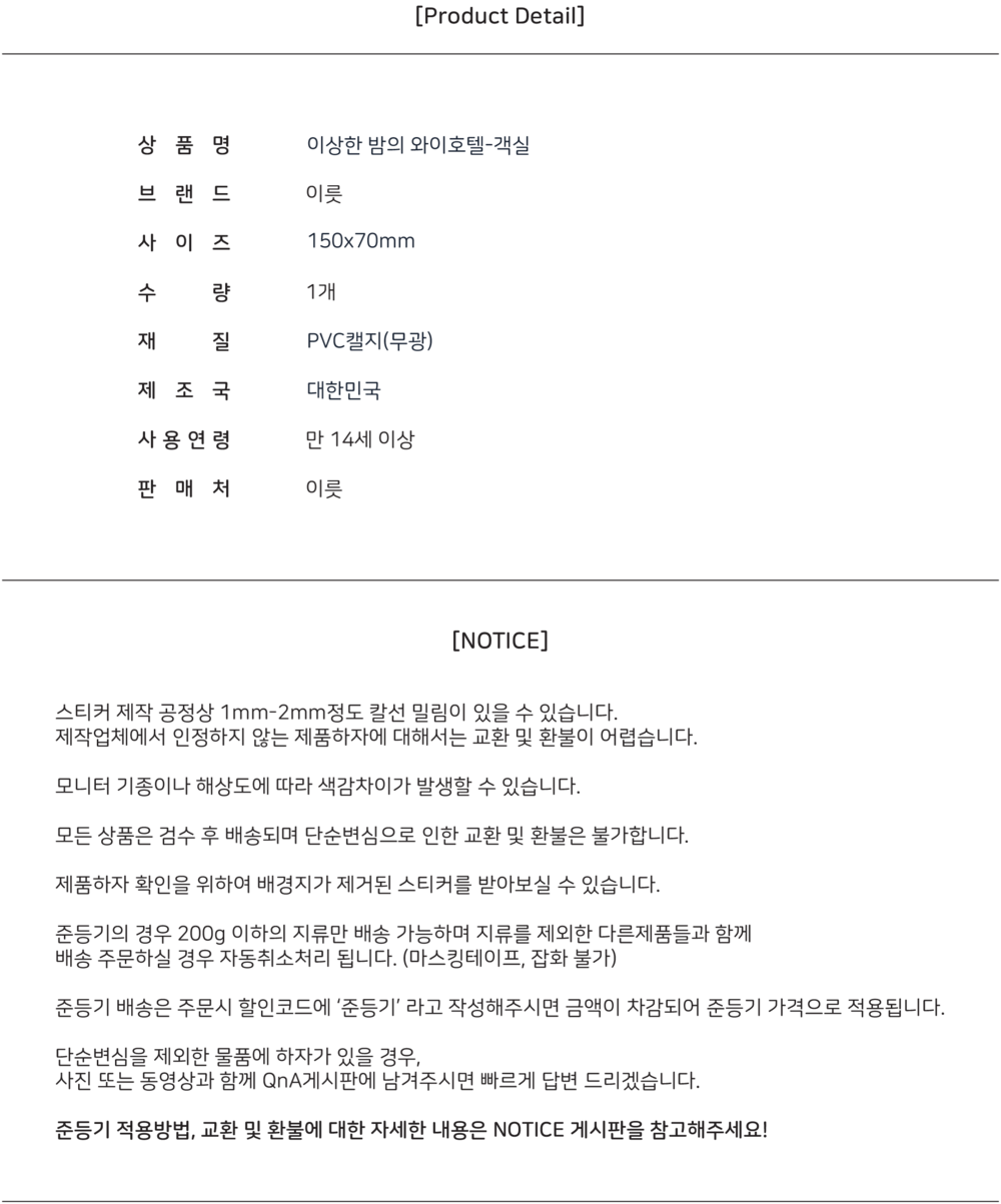 - 제품 특성상 단순 변심, 부주의에 의한 제품 손상 및 파손, 사용 및 개봉한 경우 교환/반품이 불가합니다.